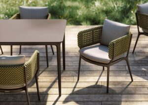 Die unverwechselbare Identität von Dedon hängt eng mit den eingesetzten Materialien zusammen. Besonders bekannt ist die eigens entwickelte Faser, die für viele geflochtene Möbelstücke verwendet wird. Sie verbindet Widerstandsfähigkeit mit einer angenehmen Haptik und ermöglicht Formen, die optisch leicht, aber konstruktiv belastbar sind. So entsteht eine Oberfläche, die raffiniert aussieht und zugleich für den Alltag im Freien gemacht ist.