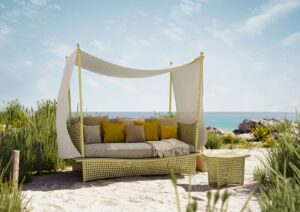 Ebenso wichtig ist die handwerkliche Verarbeitung. Viele Möbelstücke zeigen eine Tiefe und Struktur, die maschinell kaum so lebendig wirken würde. Gerade in den Flechtungen entsteht ein Rhythmus aus Licht, Schatten und Material, der den Möbeln Wärme und Charakter verleiht. Zusammen mit grosszügigen Polstern und sorgfältig abgestimmten Stoffen wird daraus ein Komforterlebnis, das weit über typische Gartenmöbel hinausgeht. Dedon macht den Unterschied zwischen draussen sitzen und draussen wohnen für Sie spürbar.