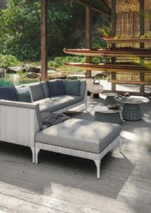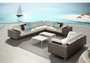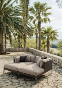Ebenso wichtig ist die handwerkliche Verarbeitung. Viele Möbelstücke zeigen eine Tiefe und Struktur, die maschinell kaum so lebendig wirken würde. Gerade in den Flechtungen entsteht ein Rhythmus aus Licht, Schatten und Material, der den Möbeln Wärme und Charakter verleiht. Zusammen mit grosszügigen Polstern und sorgfältig abgestimmten Stoffen wird daraus ein Komforterlebnis, das weit über typische Gartenmöbel hinausgeht. Dedon macht den Unterschied zwischen draussen sitzen und draussen wohnen für Sie spürbar.