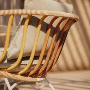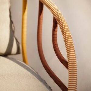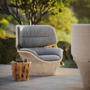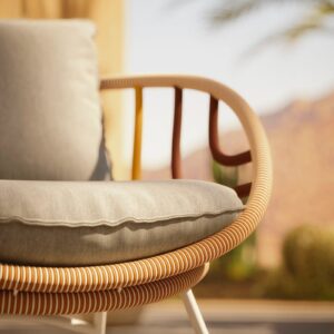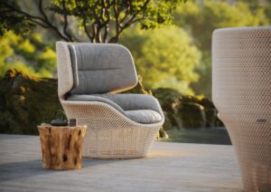 Die unverwechselbare Identität von Dedon hängt eng mit den eingesetzten Materialien zusammen. Besonders bekannt ist die eigens entwickelte Faser, die für viele geflochtene Möbelstücke verwendet wird. Sie verbindet Widerstandsfähigkeit mit einer angenehmen Haptik und ermöglicht Formen, die optisch leicht, aber konstruktiv belastbar sind. So entsteht eine Oberfläche, die raffiniert aussieht und zugleich für den Alltag im Freien gemacht ist.