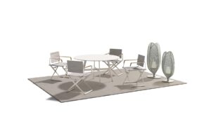 Die unverwechselbare Identität von Dedon hängt eng mit den eingesetzten Materialien zusammen. Besonders bekannt ist die eigens entwickelte Faser, die für viele geflochtene Möbelstücke verwendet wird. Sie verbindet Widerstandsfähigkeit mit einer angenehmen Haptik und ermöglicht Formen, die optisch leicht, aber konstruktiv belastbar sind. So entsteht eine Oberfläche, die raffiniert aussieht und zugleich für den Alltag im Freien gemacht ist.