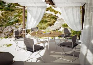 Gerade diese Herkunft spürt man bis heute in jeder Kollektion. Dedon arbeitet nicht nach kurzfristigen Trends, sondern mit einer klaren Haltung zu Langlebigkeit, Ästhetik und Nutzungskomfort. Die Marke denkt in echten Outdoor-Szenarien: Sonne, Feuchtigkeit, wechselnde Temperaturen und intensiver Gebrauch werden nicht als Problem gesehen, sondern als Ausgangspunkt guter Gestaltung. Das Ergebnis sind Möbel, die nicht empfindlich wirken, obwohl sie ausgesprochen elegant erscheinen – genau die Balance, die Sie für einen anspruchsvollen Aussenraum suchen.
