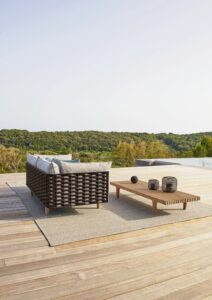 Ebenso wichtig ist die handwerkliche Verarbeitung. Viele Möbelstücke zeigen eine Tiefe und Struktur, die maschinell kaum so lebendig wirken würde. Gerade in den Flechtungen entsteht ein Rhythmus aus Licht, Schatten und Material, der den Möbeln Wärme und Charakter verleiht. Zusammen mit grosszügigen Polstern und sorgfältig abgestimmten Stoffen wird daraus ein Komforterlebnis, das weit über typische Gartenmöbel hinausgeht. Dedon macht den Unterschied zwischen draussen sitzen und draussen wohnen für Sie spürbar.