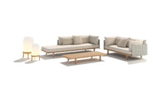 Die unverwechselbare Identität von Dedon hängt eng mit den eingesetzten Materialien zusammen. Besonders bekannt ist die eigens entwickelte Faser, die für viele geflochtene Möbelstücke verwendet wird. Sie verbindet Widerstandsfähigkeit mit einer angenehmen Haptik und ermöglicht Formen, die optisch leicht, aber konstruktiv belastbar sind. So entsteht eine Oberfläche, die raffiniert aussieht und zugleich für den Alltag im Freien gemacht ist.