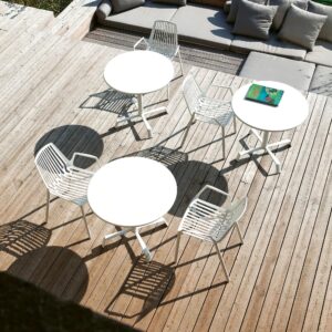 Gleichzeitig ist FAST nicht puristisch um jeden Preis. Komfort hat einen hohen Stellenwert, denn was nützt das schönste Setting, wenn man nach zwanzig Minuten wieder aufsteht? Die Proportionen vieler Sitzmöbel sind so gestaltet, dass man gerne länger bleibt, und die Kombination aus leichten Gestellen und einladenden Flächen wirkt wie eine Einladung: Setzen Sie sich, bleiben Sie noch. Gerade bei modernen Outdoor-Konzepten ist das wichtig, weil sich innen und aussen zunehmend mischen. FAST trifft diesen Zeitgeist, ohne künstlich „wohnlich“ zu tun. Stattdessen entsteht Wohnlichkeit durch Ruhe im Design, durch angenehme Haptik und durch die Selbstverständlichkeit, mit der alles zusammenpasst.