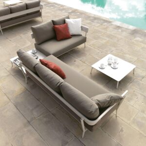 Im Zentrum vieler FAST Kollektionen steht Aluminium, und das ist kein Zufall. Aluminium ist draussen ein echtes Multitalent: Es ist leicht, stabil, korrosionsbeständig und fühlt sich im Design wie ein klarer Strich an, der Ordnung schafft. FAST nutzt dieses Material nicht nur technisch, sondern gestalterisch. Linien bleiben schlank, Formen wirken ruhig, Details sind sauber gelöst. Das Ergebnis sind Möbel, die sich mühelos umstellen lassen, die den Blick nicht verstellen und trotzdem Präsenz haben. Und wenn das Wetter in den Bergen schnell kippt oder am See ein kräftiger Wind aufzieht, zeigt sich der Vorteil sofort: Outdoor wird entspannter, weil die Ausstattung verlässlich ist.