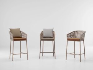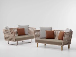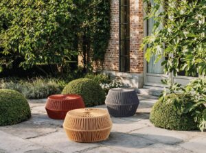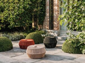 Ebenso prägend sind die textilen Elemente der Kollektionen. Geflochtene Seile oder hochwertige Outdoor-Stoffe verleihen den Möbeln eine warme und wohnliche Ausstrahlung. Gleichzeitig sind diese Materialien speziell für den Einsatz im Freien entwickelt. Sie sind UV-beständig, schnelltrocknend und angenehm im Griff.