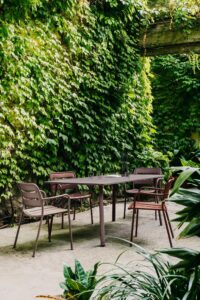 Viele Kollektionen basieren auf Aluminiumstrukturen. Dieses Material ist leicht, stabil und besonders widerstandsfähig gegen Korrosion. Dadurch behalten die Möbel ihre Form und Stabilität über lange Zeit – auch in Ihrem Garten, auf Ihrer Terrasse, in jeder Wetterlage.