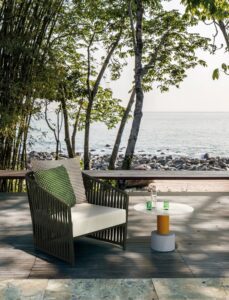 Ebenso prägend sind die textilen Elemente der Kollektionen. Geflochtene Seile oder hochwertige Outdoor-Stoffe verleihen den Möbeln eine warme und wohnliche Ausstrahlung. Gleichzeitig sind diese Materialien speziell für den Einsatz im Freien entwickelt. Sie sind UV-beständig, schnelltrocknend und angenehm im Griff.
