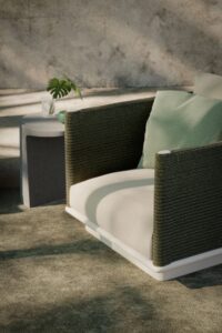 Ebenso prägend sind die textilen Elemente der Kollektionen. Geflochtene Seile oder hochwertige Outdoor-Stoffe verleihen den Möbeln eine warme und wohnliche Ausstrahlung. Gleichzeitig sind diese Materialien speziell für den Einsatz im Freien entwickelt. Sie sind UV-beständig, schnelltrocknend und angenehm im Griff.