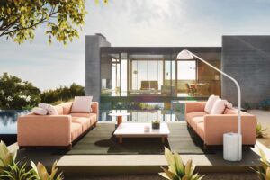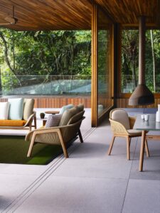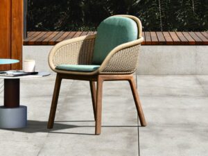 Ebenso prägend sind die textilen Elemente der Kollektionen. Geflochtene Seile oder hochwertige Outdoor-Stoffe verleihen den Möbeln eine warme und wohnliche Ausstrahlung. Gleichzeitig sind diese Materialien speziell für den Einsatz im Freien entwickelt. Sie sind UV-beständig, schnelltrocknend und angenehm im Griff.