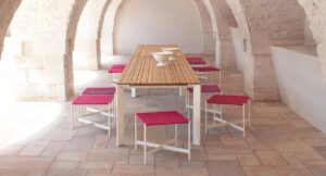 Die italienische Marke ist bekannt für eigens entwickelte Outdoor-Textilien, eine aussergewöhnliche Farbpalette sowie langlebige Materialien wie Rope, Aquatech, Brio, Teakholz, Stein und Edelstahl. Alle Möbel sind konsequent für den langfristigen Einsatz im Freien konzipiert und verbinden technische Innovation mit handwerklicher Qualität.