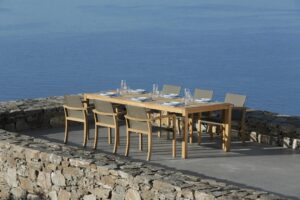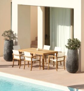 Bei Royal Botania wird Material nicht als reine Oberfläche verstanden, sondern als Versprechen. Besonders bekannt ist die Marke für den Umgang mit Teakholz, das im Outdoor-Bereich nicht nur schön altert, sondern auch Robustheit mitbringt, wenn es richtig ausgewählt und verarbeitet wird. Teak wirkt dabei nie wie eine rustikale Lösung, sondern eher wie ein nobles Naturmaterial, das Design weicher macht und Ihrem Aussenraum sofort mehr Wärme verleiht. Gleichzeitig setzt Royal Botania auf Aluminium und Edelstahl dort, wo es strukturelle Leichtigkeit und Stabilität braucht.