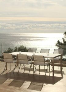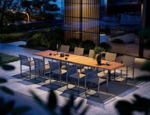 Bei Royal Botania wird Material nicht als reine Oberfläche verstanden, sondern als Versprechen. Besonders bekannt ist die Marke für den Umgang mit Teakholz, das im Outdoor-Bereich nicht nur schön altert, sondern auch Robustheit mitbringt, wenn es richtig ausgewählt und verarbeitet wird. Teak wirkt dabei nie wie eine rustikale Lösung, sondern eher wie ein nobles Naturmaterial, das Design weicher macht und Ihrem Aussenraum sofort mehr Wärme verleiht. Gleichzeitig setzt Royal Botania auf Aluminium und Edelstahl dort, wo es strukturelle Leichtigkeit und Stabilität braucht.