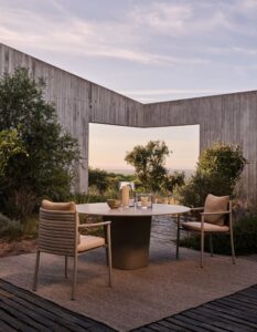 Auch die Textilien sind sorgfältig ausgewählt. Hochwertige Outdoor-Stoffe sorgen für angenehmen Sitzkomfort und bleiben gleichzeitig widerstandsfähig gegenüber Sonne, Regen und Temperaturschwankungen. Sie fühlen sich weich an und erinnern eher an hochwertige Indoor-Textilien als an klassische Gartenpolster.