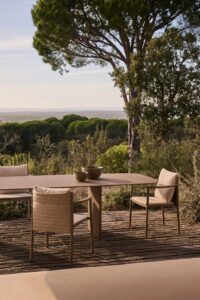 Typisch für Tribù sind sorgfältig ausgewählte Materialien wie Aluminium, Teakholz, Keramik, hochwertige Outdoor-Textilien und wetterbeständige Geflechte. Alle Möbel sind für den ganzjährigen Einsatz im Freien konzipiert und überzeugen durch präzise Verarbeitung, hohe Langlebigkeit und eine ruhige, elegante Formensprache.