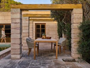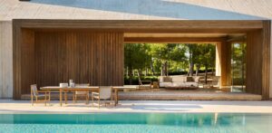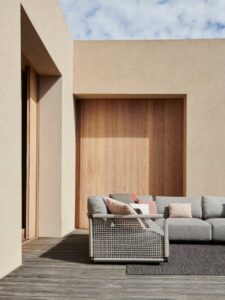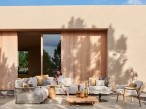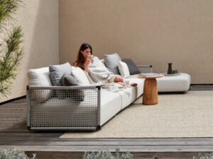 Auch die Textilien sind sorgfältig ausgewählt. Hochwertige Outdoor-Stoffe sorgen für angenehmen Sitzkomfort und bleiben gleichzeitig widerstandsfähig gegenüber Sonne, Regen und Temperaturschwankungen. Sie fühlen sich weich an und erinnern eher an hochwertige Indoor-Textilien als an klassische Gartenpolster.