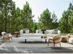 Typisch für Tribù sind sorgfältig ausgewählte Materialien wie Aluminium, Teakholz, Keramik, hochwertige Outdoor-Textilien und wetterbeständige Geflechte. Alle Möbel sind für den ganzjährigen Einsatz im Freien konzipiert und überzeugen durch präzise Verarbeitung, hohe Langlebigkeit und eine ruhige, elegante Formensprache.
