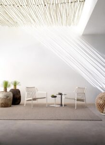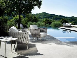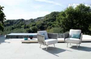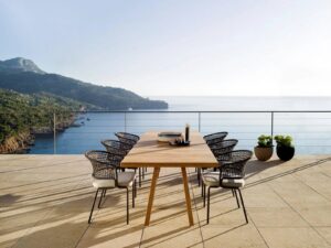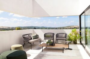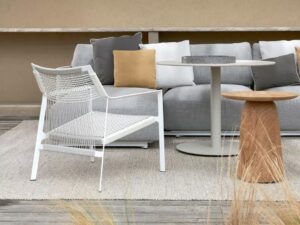 Typisch für Tribù sind sorgfältig ausgewählte Materialien wie Aluminium, Teakholz, Keramik, hochwertige Outdoor-Textilien und wetterbeständige Geflechte. Alle Möbel sind für den ganzjährigen Einsatz im Freien konzipiert und überzeugen durch präzise Verarbeitung, hohe Langlebigkeit und eine ruhige, elegante Formensprache.