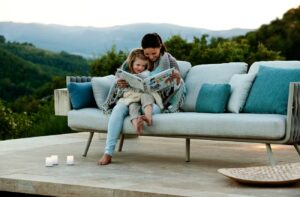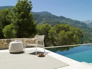 Auch die Textilien sind sorgfältig ausgewählt. Hochwertige Outdoor-Stoffe sorgen für angenehmen Sitzkomfort und bleiben gleichzeitig widerstandsfähig gegenüber Sonne, Regen und Temperaturschwankungen. Sie fühlen sich weich an und erinnern eher an hochwertige Indoor-Textilien als an klassische Gartenpolster.