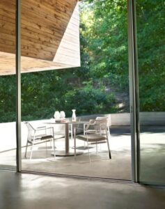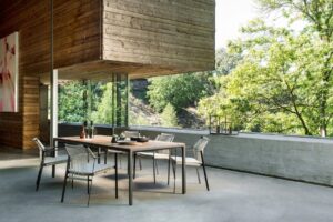 Typisch für Tribù sind sorgfältig ausgewählte Materialien wie Aluminium, Teakholz, Keramik, hochwertige Outdoor-Textilien und wetterbeständige Geflechte. Alle Möbel sind für den ganzjährigen Einsatz im Freien konzipiert und überzeugen durch präzise Verarbeitung, hohe Langlebigkeit und eine ruhige, elegante Formensprache.