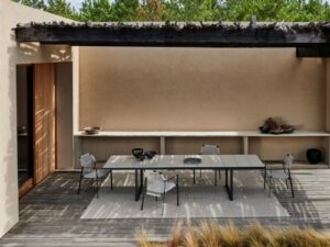 Neben Holz setzt Tribù auf pulverbeschichtetes Aluminium. Das Material ist leicht, stabil und vollkommen rostfrei. Dadurch entstehen Möbel, die sowohl robust als auch überraschend filigran wirken. Schlanke Rahmen und präzise Verbindungen verleihen den Kollektionen eine moderne Leichtigkeit, die Ihrem Aussenraum Eleganz verleiht, ohne ihn zu überladen.