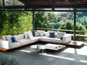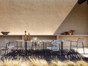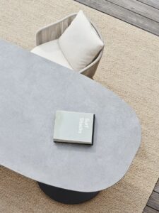 Typisch für Tribù sind sorgfältig ausgewählte Materialien wie Aluminium, Teakholz, Keramik, hochwertige Outdoor-Textilien und wetterbeständige Geflechte. Alle Möbel sind für den ganzjährigen Einsatz im Freien konzipiert und überzeugen durch präzise Verarbeitung, hohe Langlebigkeit und eine ruhige, elegante Formensprache.