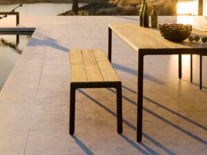 Neben Holz setzt Tribù auf pulverbeschichtetes Aluminium. Das Material ist leicht, stabil und vollkommen rostfrei. Dadurch entstehen Möbel, die sowohl robust als auch überraschend filigran wirken. Schlanke Rahmen und präzise Verbindungen verleihen den Kollektionen eine moderne Leichtigkeit, die Ihrem Aussenraum Eleganz verleiht, ohne ihn zu überladen.