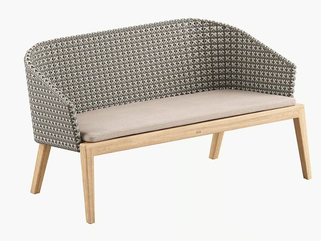 Calypso ist ein 2-sitziges Gartensofa aus Kunstfaser und Teakholz.