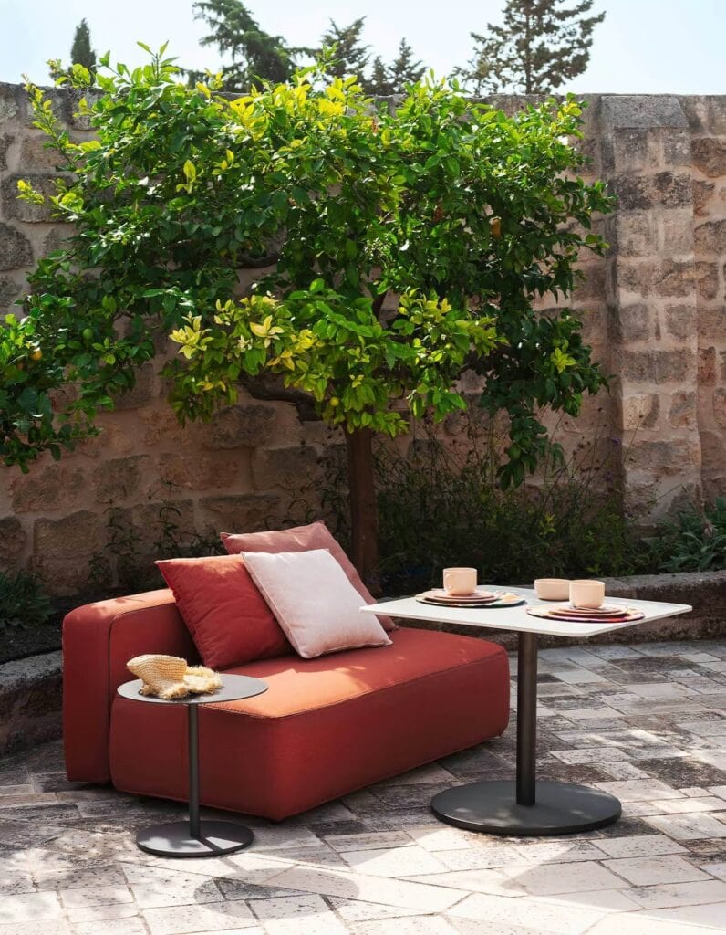 A revolutionary collection that encapsulates all the functions of an indoor textile sofa—so intimate and familiar—in a fully outdoor version.