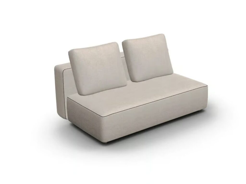 The core of all the elements in the collection consists of an aluminum shell, lightweight yet extremely robust, hidden by a padding with total outdoor technology that is fully draining, breathable, and resistant to weather elements. Dandy is covered with a textile upholstery, available in a wide range of fabrics inspired by natural textures and contemporary color palettes. All the covers are attached to the structure and are easily removable for cleaning or storage during the winter season.