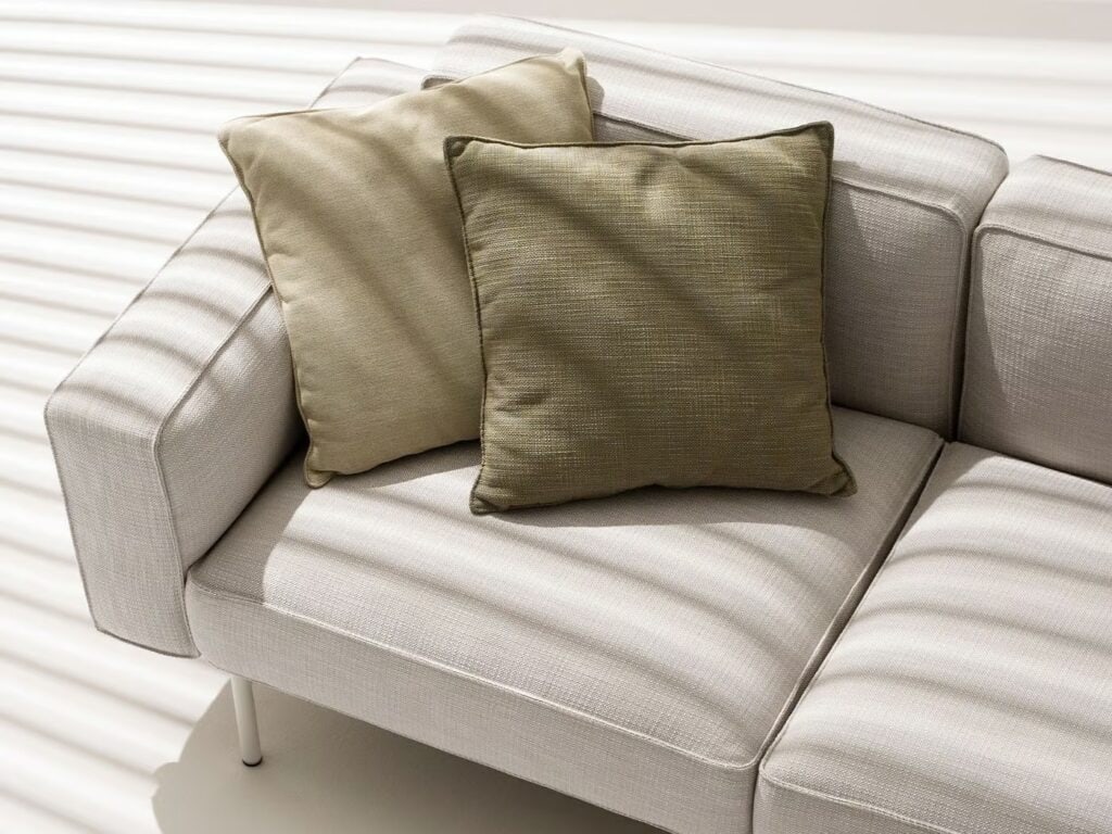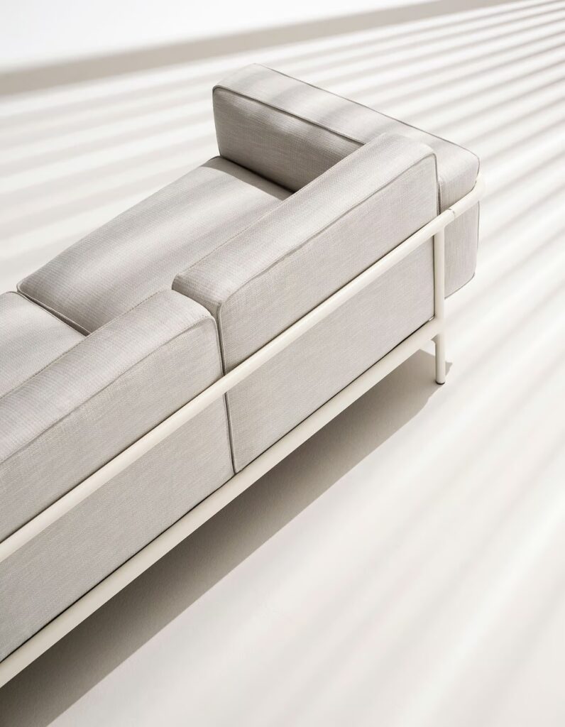 ESTENDO 002 is a 2-seater outdoor upholstered sofa in fabric.