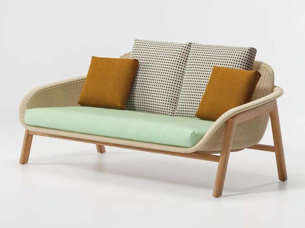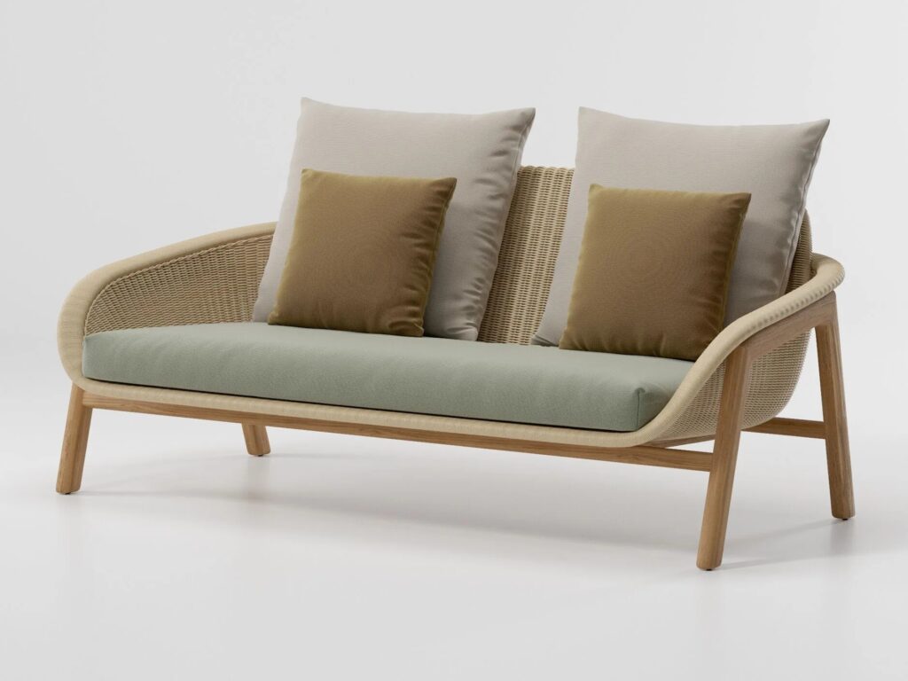 Die Vimini-Kollektion umfasst einen Esszimmer-Sessel, Sofas und Beistelltische.