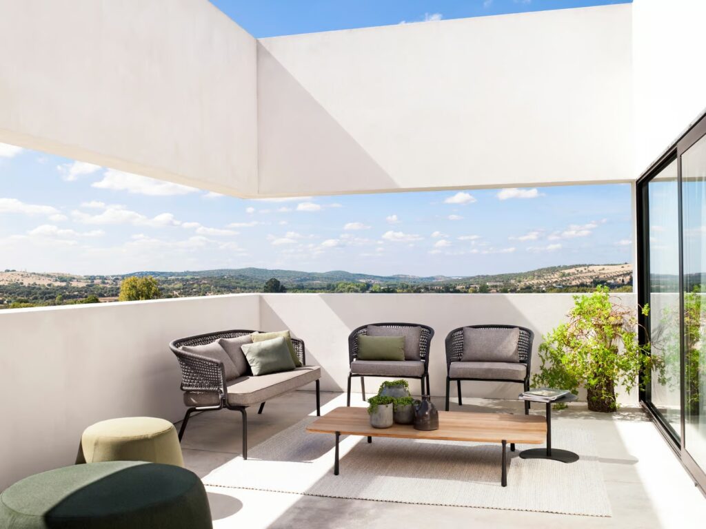 Die luftigen, eleganten Formen der CTR-Kollektion kombinieren Technik mit natürlicher Eleganz. CTR verdankt seinen Namen dem pulverbeschichteten Rohrprofil, das der kompletten Linie des Stuhls folgt. Mit CTR realisiert der italienische Designer Piergiorgio Cazzaniga etwas, worin er gut ist: technischen Sachverstand mit einem scheinbar einfachen Design kombinieren. Der Rahmen des Stuhls besteht aus pulverbeschichteten Inox-Rohrprofilen, die in einer ununterbrochenen Linie gebogen sind. Dies erfordert großes Geschick, da die Ecken massiv sind. Die Rückenlehne ist an nur 2 Punkten am Rahmen befestigt, wodurch sie zu schweben scheint. Die offene gewebte Struktur erinnert an die Jahrhunderte alte Tradition des Webens. Die Sitzfläche ist mit einem Kissen verkleidet, das wasserabweisend und einfach zu entfernen ist.