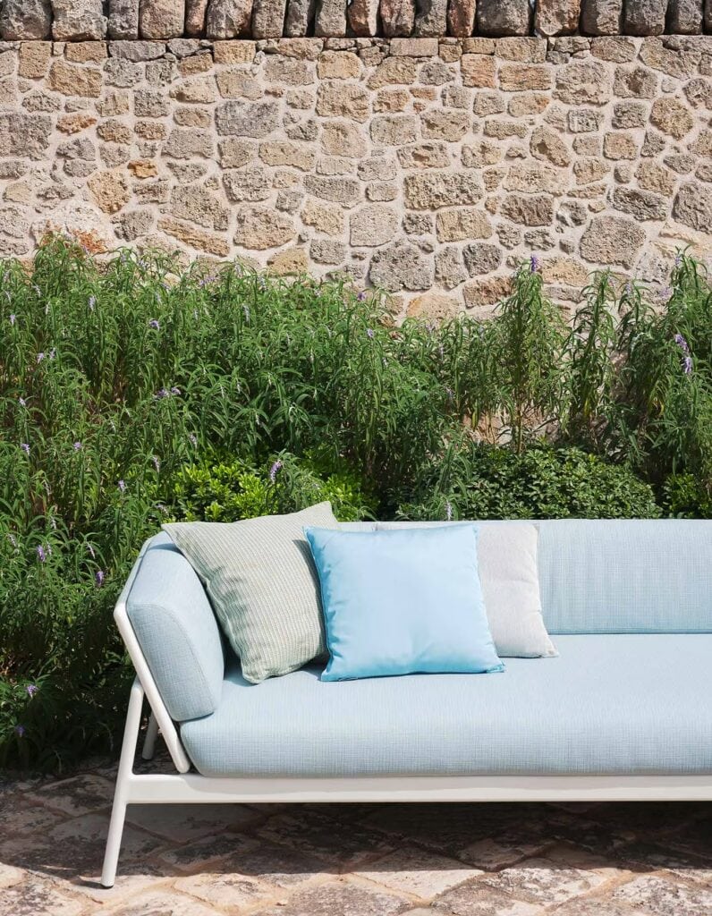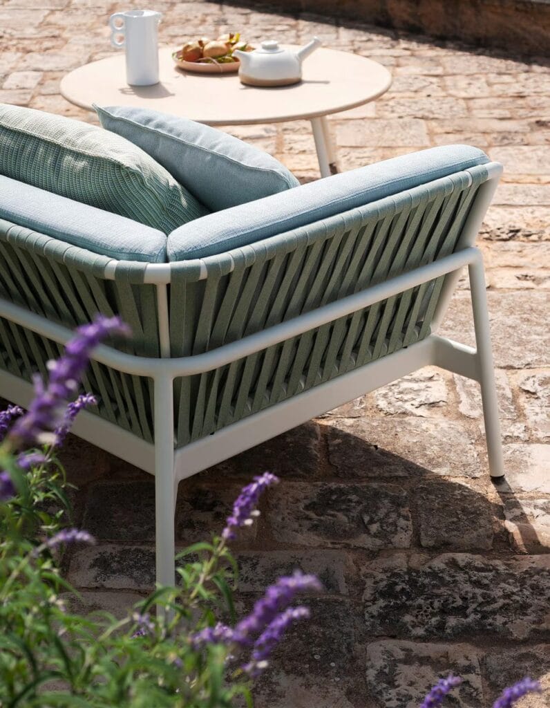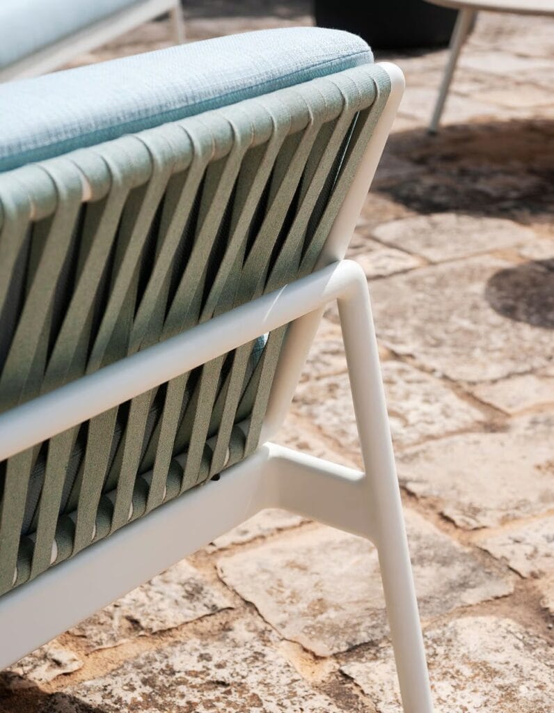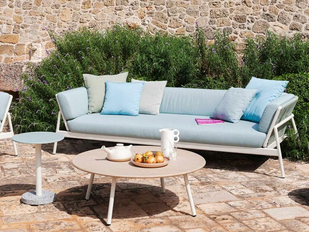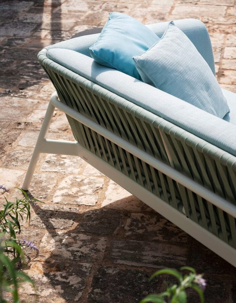 Die Sofas PIPER fügen dem RODA-Vorschlag ein Design von großer Persönlichkeit und Charakter, neue Farben und beispiellose Kombinationen in großartiger Harmonie mit der umgebenden Natur hinzu. Die Struktur des Sofas ist in den Varianten Rauch, Milch und Rost erhältlich, eine raffinierte Endbearbeitung, die an die Empfindungen der Rostfarbe erinnert, gemischt mit der Weichheit der Stoffe und Kissen mit einem Hauch von Indoor. Die Sofas der PIPER-Kollektion zeichnen sich durch die Verwendung von Doppelmaterialien wie Aluminium/Gurt und Aluminium/Batyline aus. Sie bieten die Wahl zwischen einem Set, das ein Sitzkissen und ein Rückenlehnenkissen umfasst, und einem Set mit umhüllenden Kissen, die die gesamte Struktur einnehmen. Diese Sofas sind ideale Outdoor-Accessoires, die maximale Freiheit beim Genießen und Nutzen im Freien ermöglichen.