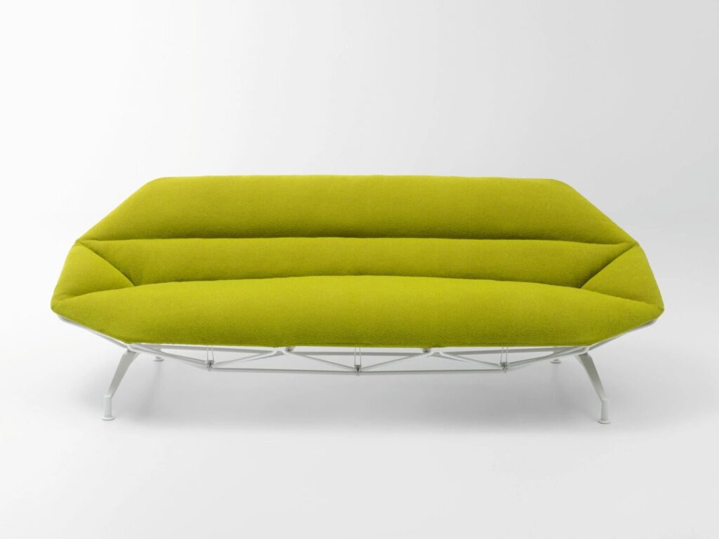 Alma is a collection of outdoor seating. Structure in matt or polished painted AISI 316 stainless steel, adjustable stainless steel and rubber tips. Removable structural upholstery in ivory or graphite coloured Rete fabric connected to the steel structure by means of plastic buttons and Rope ropes. Seat mattress in polyester fibre, removable outer cover in Whim fabric. The mattress is fixed to the structure of the armchair and sofas through the use of fibreglass rods. Alternatively, quilts or large cushions can be used with upholstery in a selection of the collection's outdoor fabrics, in Shaved Mesh or Moss Mesh.