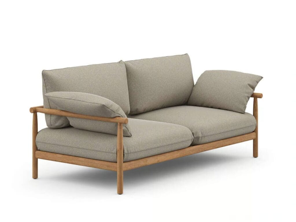 TIBBO ist ein 3-sitziges Gartensofa aus Stoff und Teakholz.