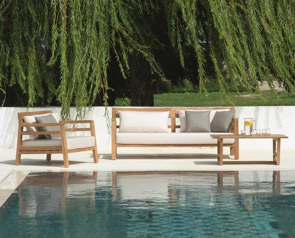Costes erforscht Holz in all seinen Ausdrucksmöglichkeiten: vom lackierten Mahagoni, das zu verschiedenen Kontexten passt, bis hin zum Teakholz natur oder gebeizt, mit seinem faszinierend “verwitterten” Look. Umfangreiche Auswahl an Elementen mit harmonischer, schlichter Linienführung: Sofas, Tische, Stühle und Sonnenliegen.