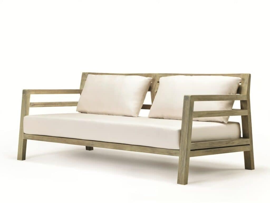COSTES | Sofa - 3-Sitzer-Sofa aus gebeiztem Teakholz oder lackiertes Mahagoni, komplett mit Sitz- und Rückenlehnenkissen.