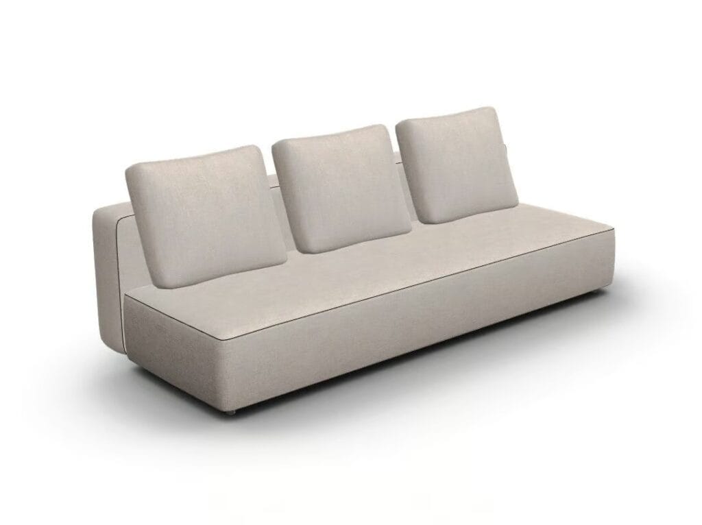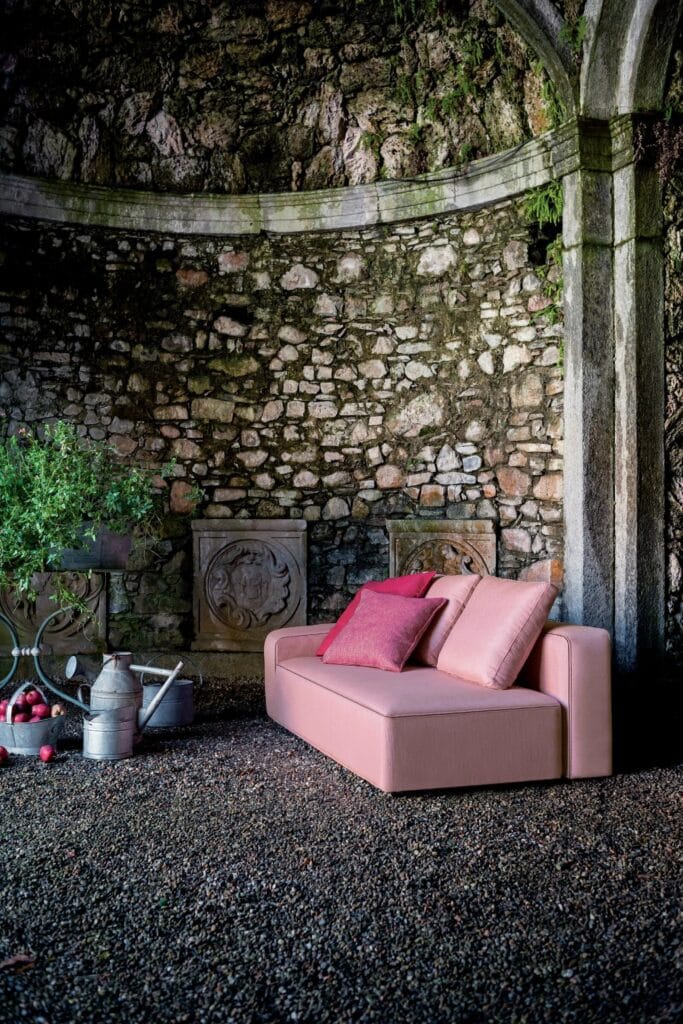 A revolutionary collection that encapsulates all the functions of an indoor textile sofa—so intimate and familiar—in a fully outdoor version.