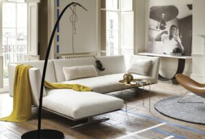 Die Eigenschaften des Produkts sind bereits sehr gut im Namen zusammengefasst: Das Sofa Evergreen zeichnet sich durch sein schlichtes, zeitloses und an keine Modetendenz gebundenes Design aus. Der Eindruck von Leichtigkeit und Raffinesse, den das Sofa ausstrahlt, wird durch das Design des Gestells aus Metalldruckguss bewirkt, das das Sofa vom Boden abhebt. Rücken- und Armlehnen sind nicht sehr dick und neigen sich nach außen, was den schwebenden Effekt des Sofas betont. Die Sitzkissen liegen auf einer lederbezogenen Metallbasis auf, ein Detail, das diesem sehr anpassungsfähigen Sofa noch mehr Wert verleiht.