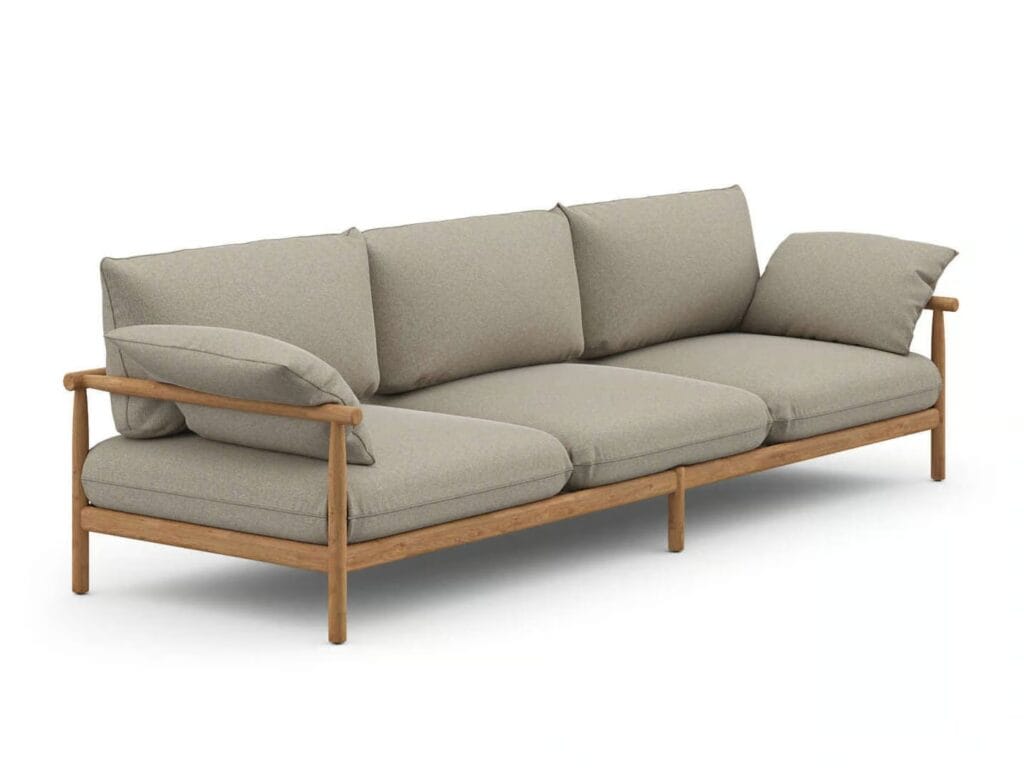 TIBBO ist ein 4-sitziges Gartensofa aus Stoff und Teakholz.