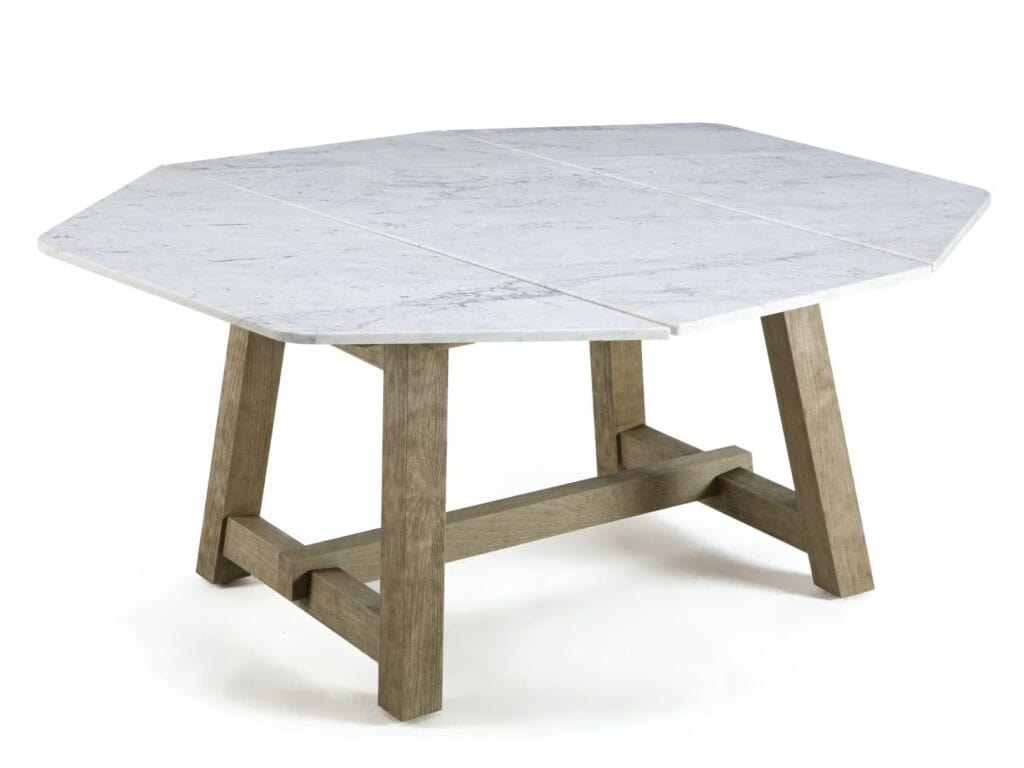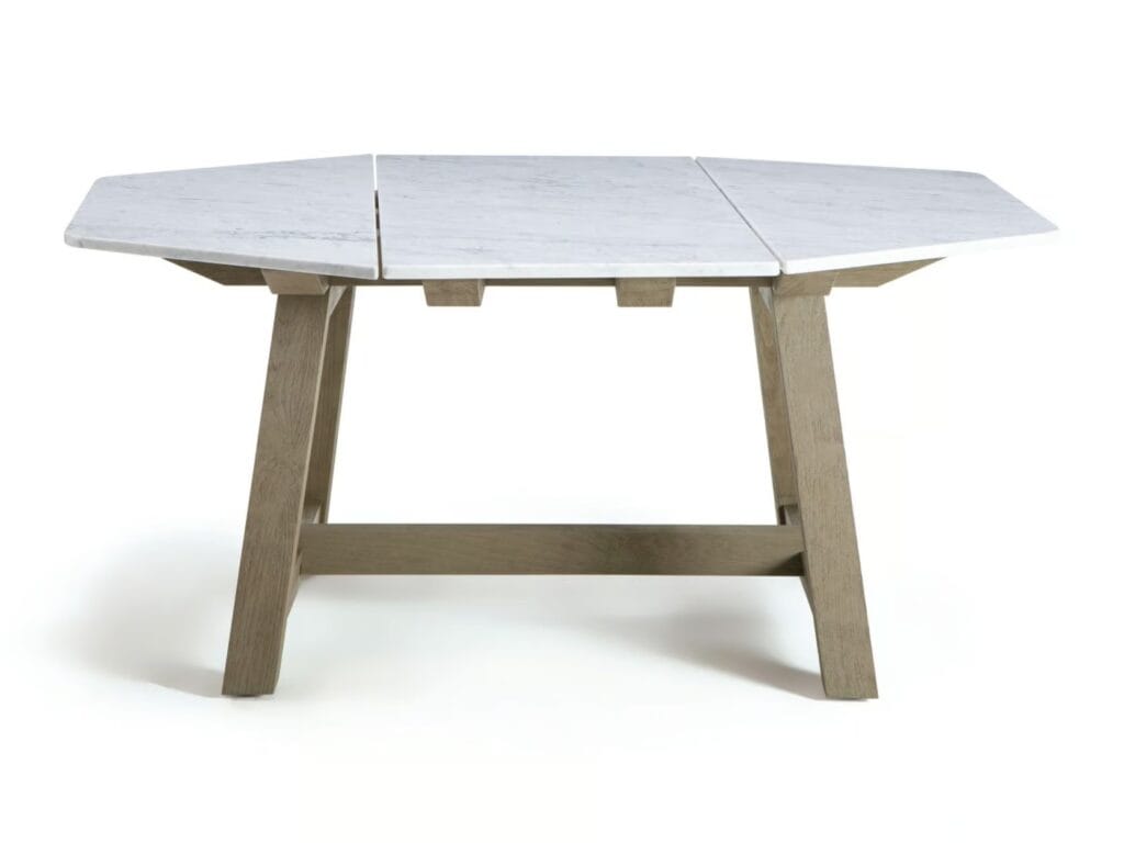 Rafael ist ein achteckiger Marmortisch von Ethimo, entworfen von Paola Navone.