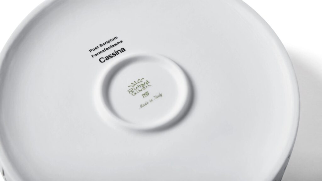 Die Motive werden vollständig von Hand mit speziellen Keramikkreiden hergestellt. Jedes Objekt ist in jeder Hinsicht einzigartig, sowohl in Bezug auf die Beschaffenheit des Porzellans als auch auf die emotionale Handfertigkeit, mit der es hergestellt wird. Jedes Stück ist von dem Meister, der es verziert hat, nummeriert und trägt die Logos von Cassina und Ginori 1735.