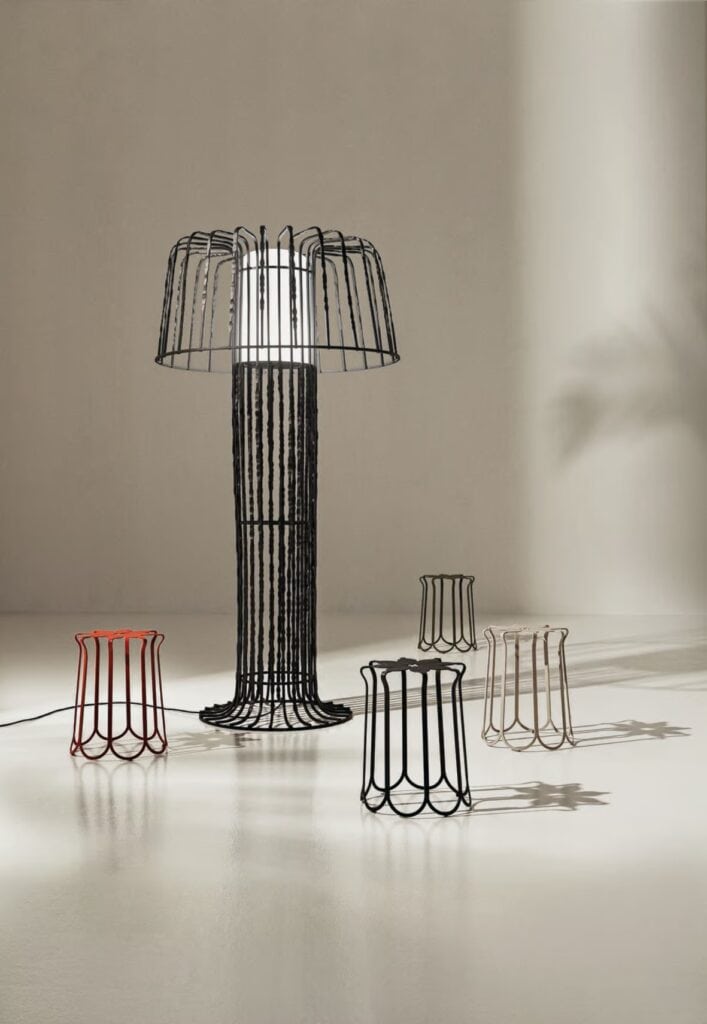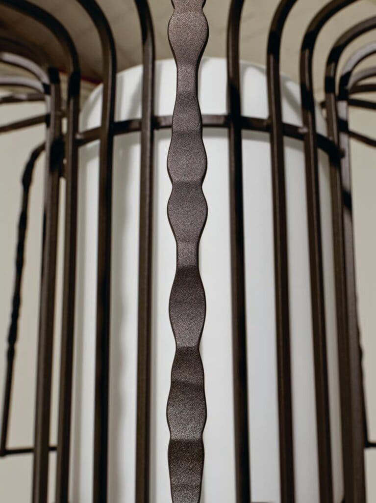 Dank der besonderen Verarbeitung des Schmiedeeisens verleiht sie jeder Umgebung eine warme und gemütliche Atmosphäre; sie sorgt nicht nur für eine diffuse Beleuchtung, sondern lässt auch besondere Lichteffekte und Reflexe entstehen, die ein echter Blickfang sind, so dass sie in jedem Ambiente zu einem zentralen Element wird.