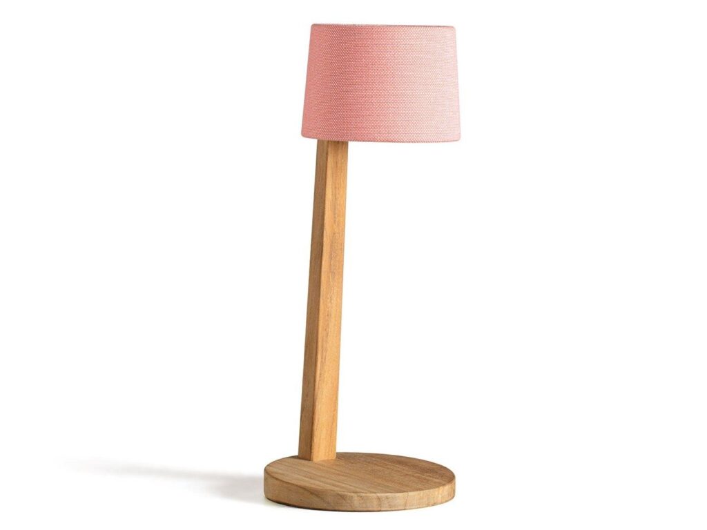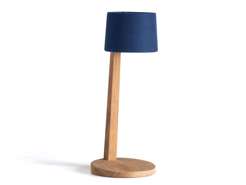 Aussentischleuchte aus Teakholz Akku