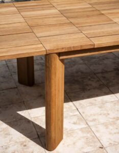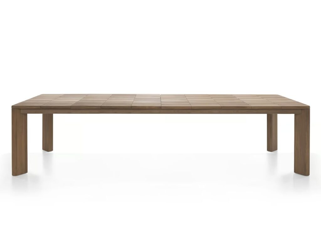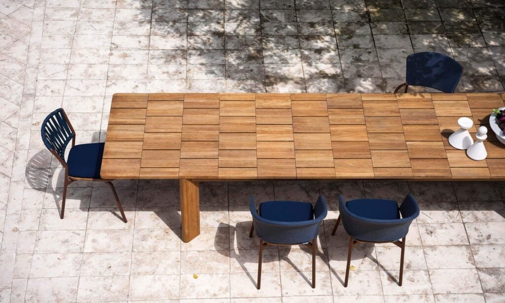 BRICK entdeckt ein einfaches und natürliches Material wie Holz neu. Das Konzept des ausziehbaren Tisches, der Protagonist dieser Kollektion ist, wird bereits aus dem Namen ersichtlich, aus dem englischen BRICK, Ziegel: Das kostbare Teakholz, aus dem die verschiedenen Elemente gefertigt sind, zerfällt nach einem rhythmischen Spiel geometrisch perfekter Fugen, die das Design der gesamten Platte prägen. Die Stabilität der Struktur, die von entscheidenden und essentiellen Linien entworfen wurde, kontrastiert mit der Dynamik der ausziehbaren Platte. Wird BRICK direkt Witterungseinflüssen ausgesetzt, kann es aufgrund der Komplexität der Konstruktion und der hohen Anzahl von Holzklötzen in der Platte zu leichten Verschiebungen kommen: Dies sind kleine, ganz natürliche Variationen, die den Gebrauch und die Funktionalität des Tisches nicht beeinträchtigen. Um solche Verschiebungen zu verhindern und den BRICK-Tisch im Laufe der Zeit stabil zu halten, wird empfohlen, ihn in überdachten Bereichen wie Veranden zu platzieren. Der ausziehbare Tisch BRICK wurde 2016 beim XXIV Compasso d'Oro Award mit der Ehrenauszeichnung ausgezeichnet.