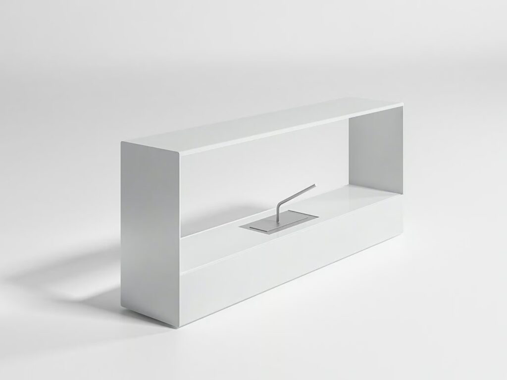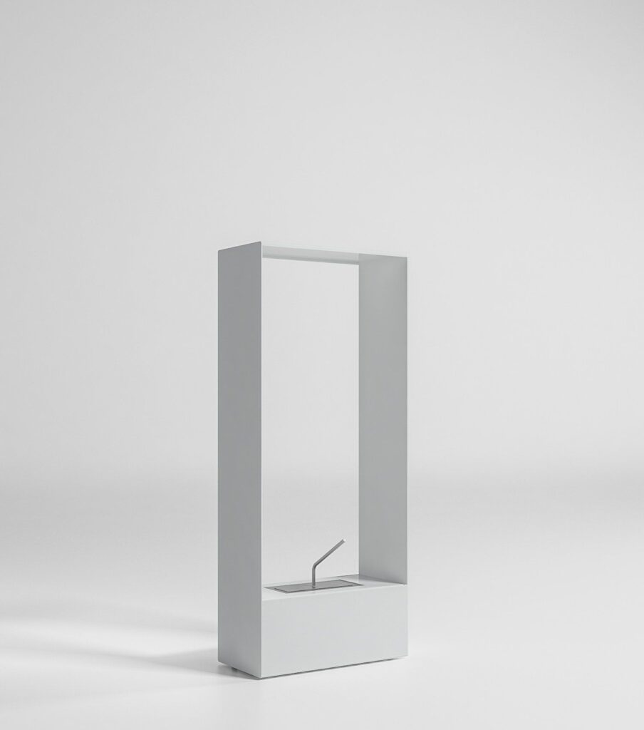 Brenner hergestellt aus lackiertem Stahl. Kamin austhermolackierten Stahl. Als Brennstoff wird Bioethanol empfohlen.