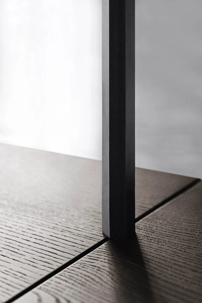 - Klappe und Rückwand, nur im äusseren Teil, furniert in Stone Oak® mit Acryllackierung; Boden und Innenteile immer mattschwarz lackiert;