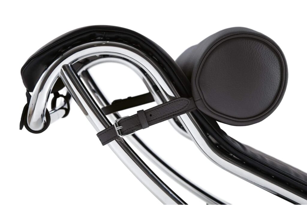Zu den weltweiten Bestsellern von Cassina zählt auch die Chaise longue à réglage continu in beiden Versionen, bei der es sich um die Chaiselongue par excellence handelt. Sie wurde 1928 basierend auf einer Studie über Sitzmöbel für Momente der Ruhe und Erholung entworfen und steht für das Konzept der Entspannung. Diese Chaiselongue bringt den Wunsch der drei Designer zum Ausdruck, den Mensch in den Mittelpunkt ihres Entwurfs zu stellen, und verbindet Form und Funktion mit einer perfekten Harmon ie von klarem Design und Komfort des Benutzers. Für die Stabilität der Liege bei jeder Neigung garantiert die Reibung der Gummiüberzüge an den Querstreben des Gestells. Diese Liege wird mit Blick auf die Nachhaltigkeit aus recycelbaren Materialien gefertigt. Die Polsterung besteht aus Polyesterfaser und die Nackenrolle aus Füllwatte aus 100% recyceltem PET. Die Innenseit e der Auflage wird jetzt mit einem Klettband befestigt, ein Detail, das das Zerlegen des Produkts erleichtert.